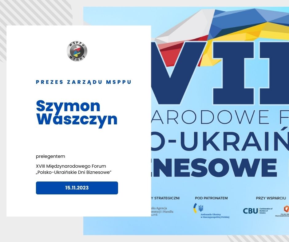 Голова Ради МТППУ Шимон Ващин візьме участь у XVIII Міжнародному форумі «Польсько-українські дні бізнесу» та виступатиме з доповіддю під час Панелі 1, основною темою якої є: «Нова ера польсько-української торгівельної та економічної співпраці: пріоритети та перспективи»