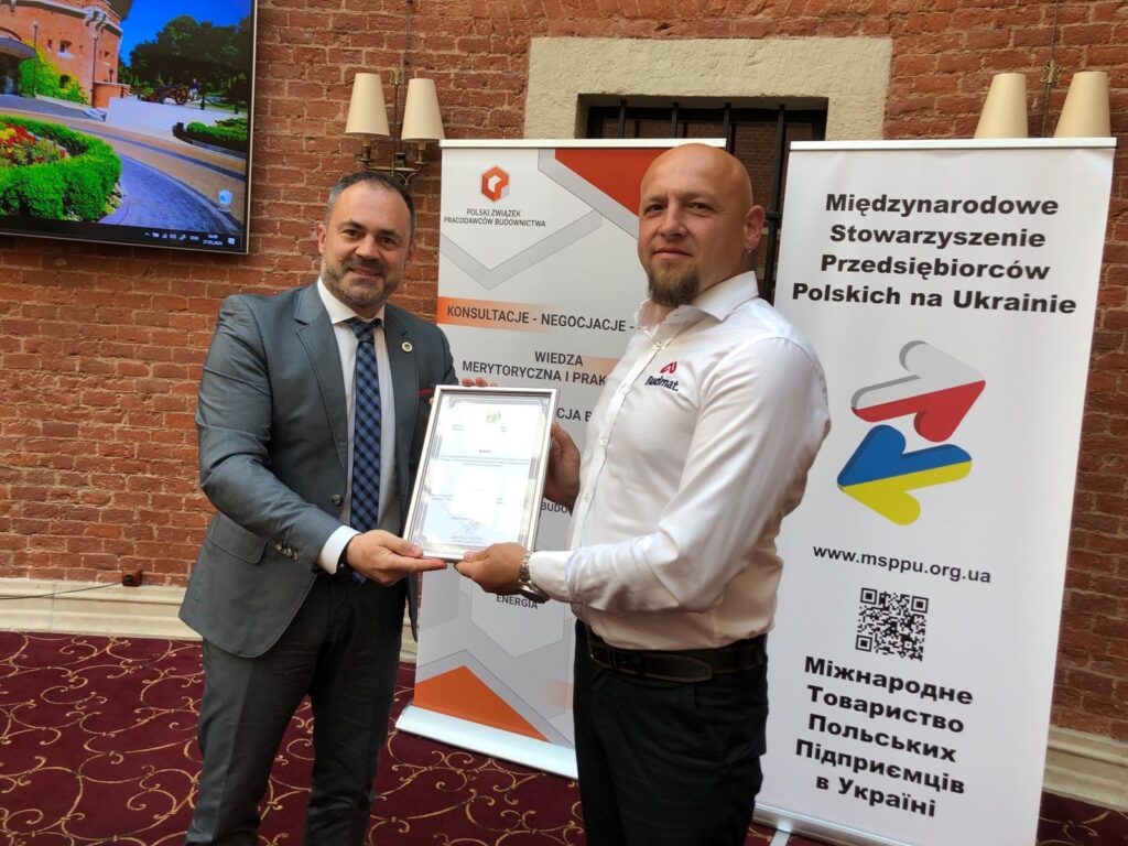 Uroczyście przywitalismy nowe Spółki Budmat oraz 4Export na pokładzie naszego Międzynarodowego Stowarzyszenia Przedsiębiorców Polskich na Ukrainie. Obie firmy działają w zakresie dystrybucji i produkcji materiałów budowlanych, Budmat jest obecny na rynku UA, 4Export dopiero wchodzi. Wręczenie Certyfikatów i znaczków odbyło sie podczas oficjalnej cześci naszej misji gospodarczej do Lwowa 27.05.24., a rozmowy handlowe podczas kolacji na tarasach restauracji Kupoł w centrum Lwowa. Dziękujemy za wspólną organizację wydarzenia PZPB oraz PAIH.
